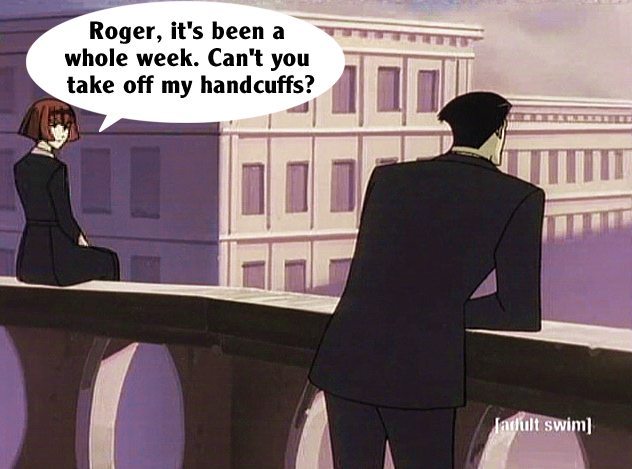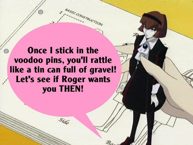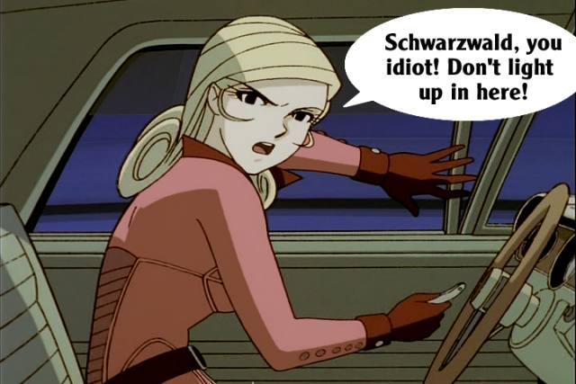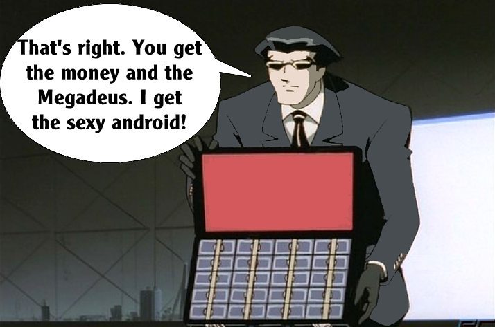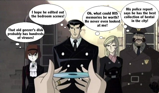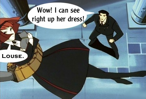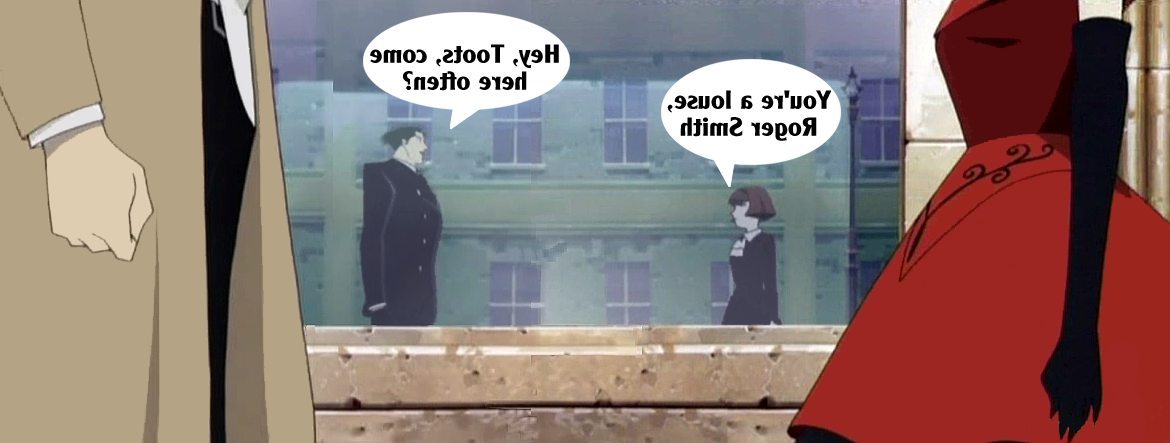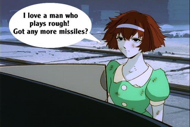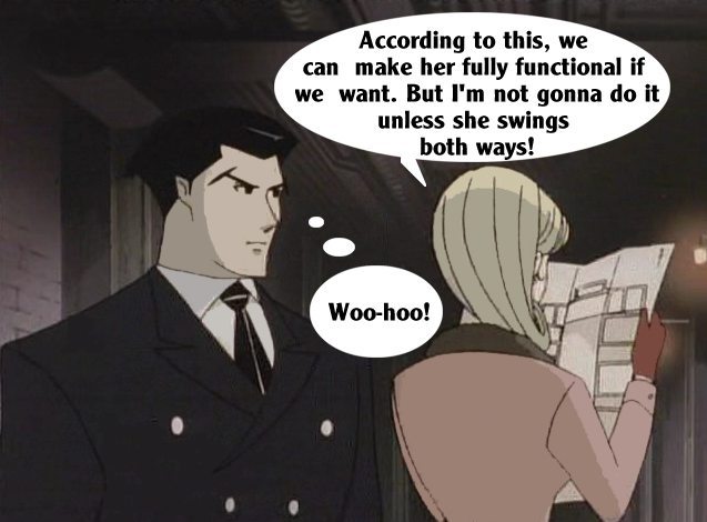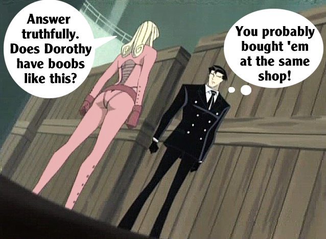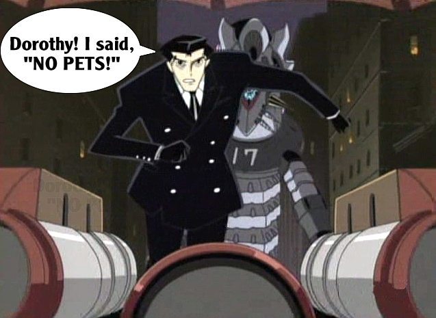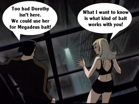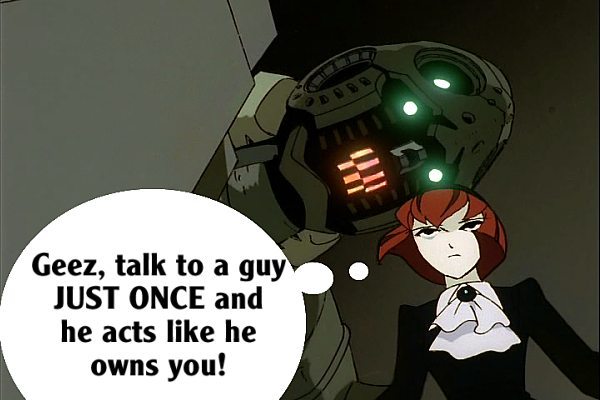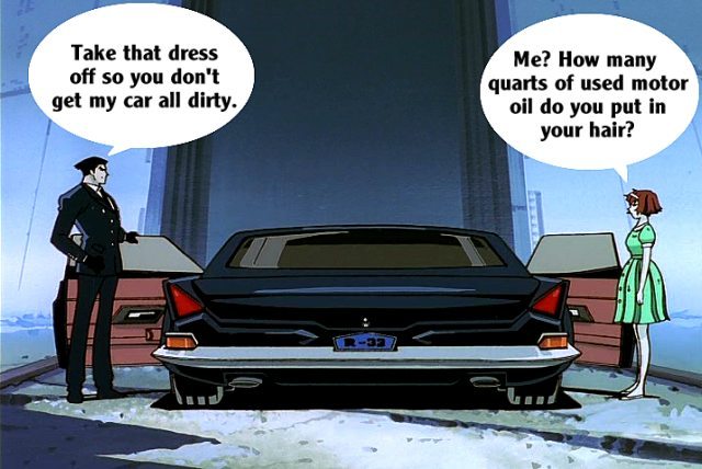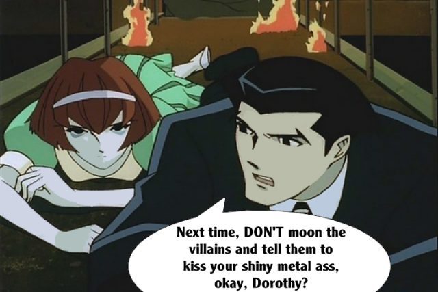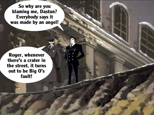These pictures are screen shots from the animated TV show, "The Big O." The captions are from me.