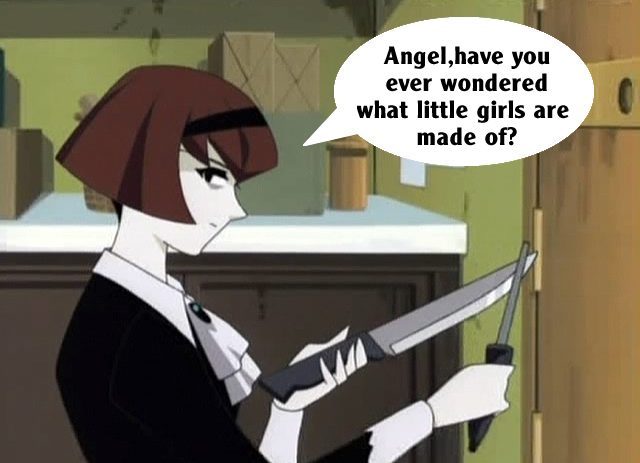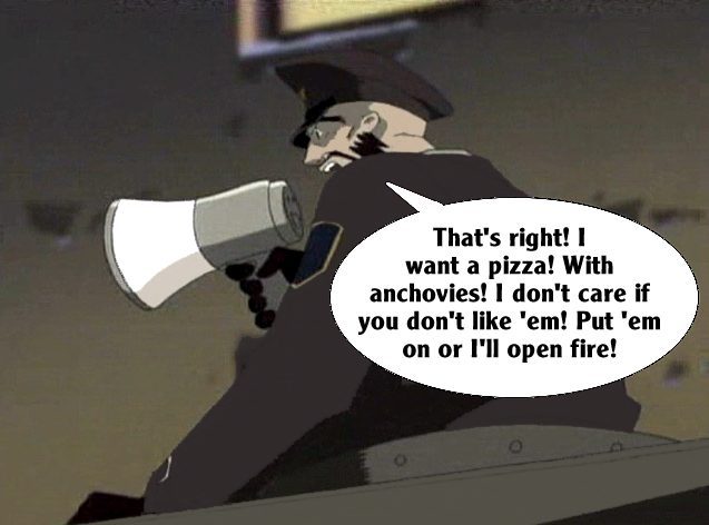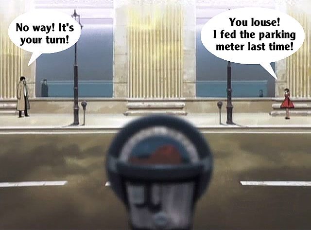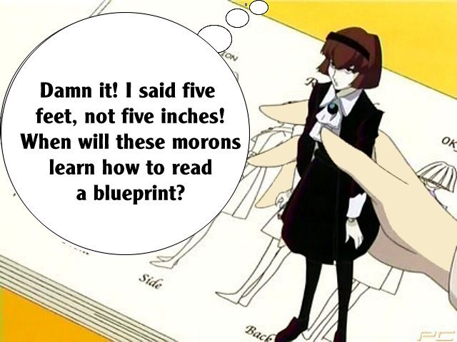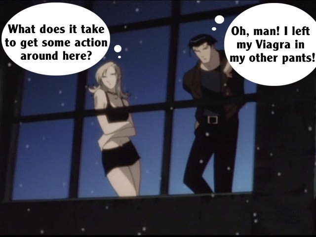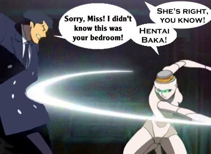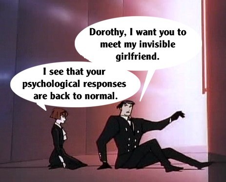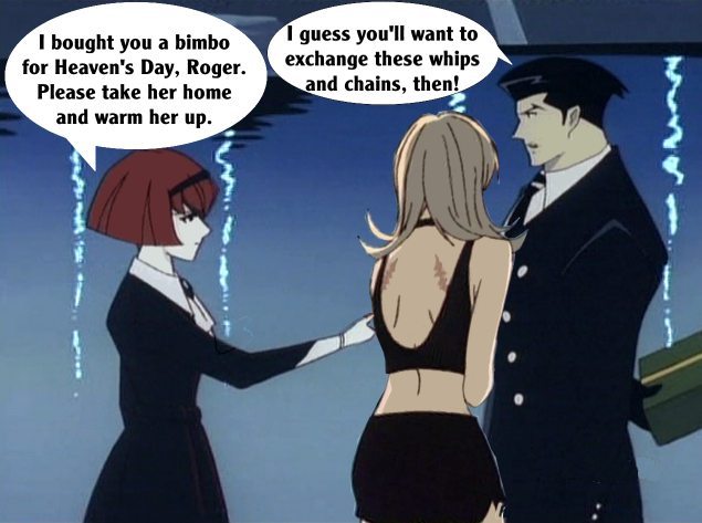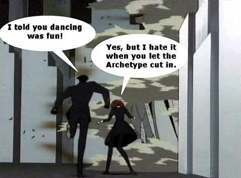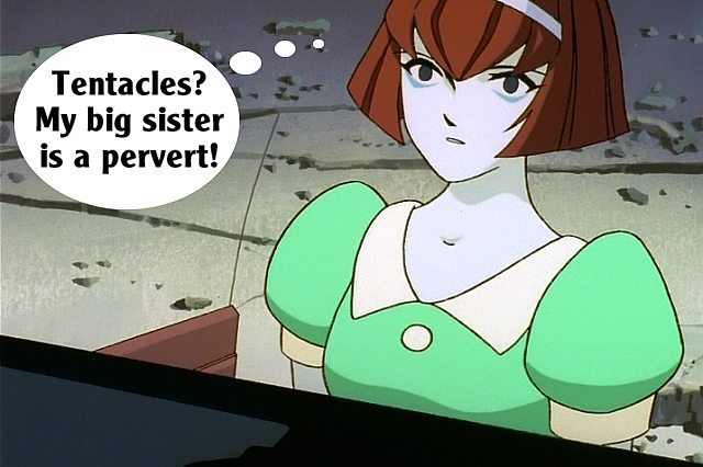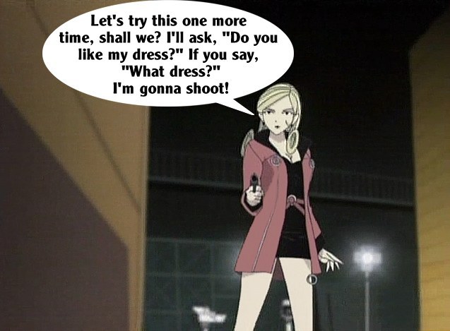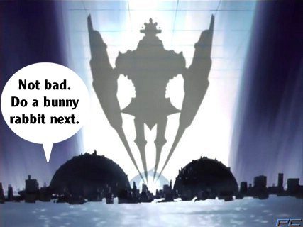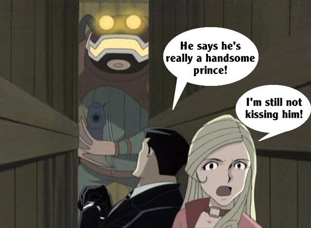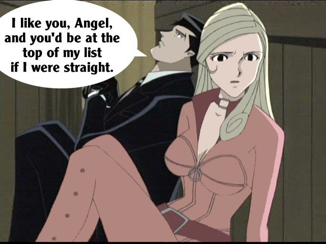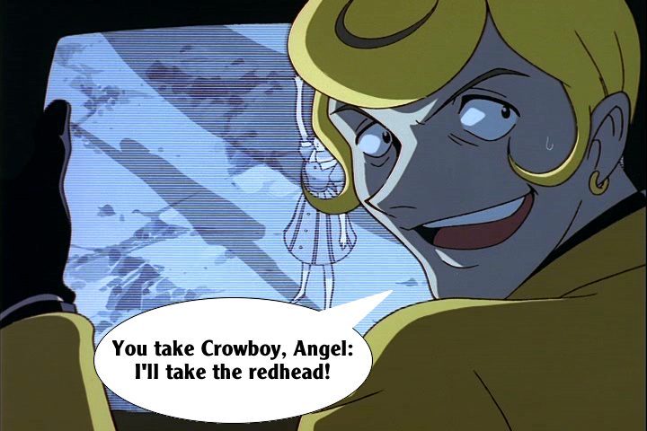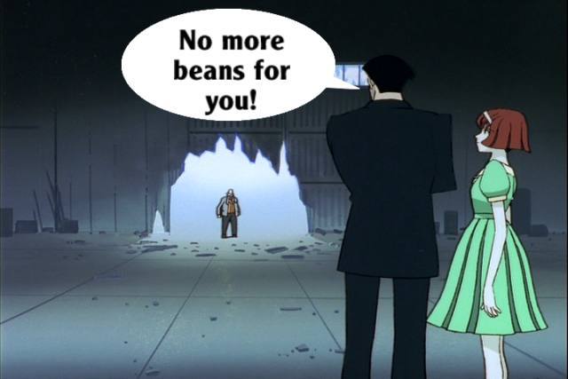 These pictures are screen shots from the animated TV show, "The Big O." The captions are from me.